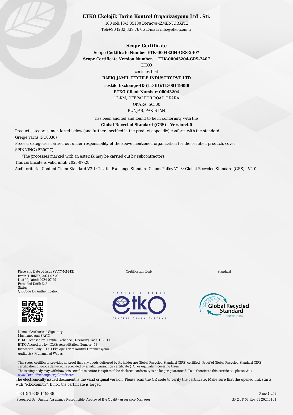 Rafiq Jamil Textile Industries Pvt Ltd